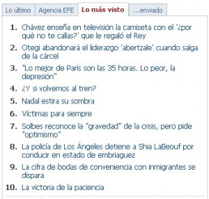 Es un ejemplo de hace algún tiempo, pero cualquier día, a cualquier hora, podemos ver que las noticias más leídas (o más votadas) son en gran parte de este estilo.